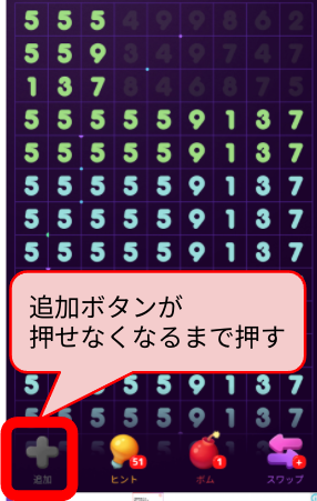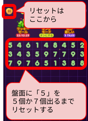 盤面に「5」が5個か7個、確保できるまでリセットを繰り返してください