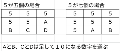 左側3✕3のマスにリセマラで出した「5」を配置します