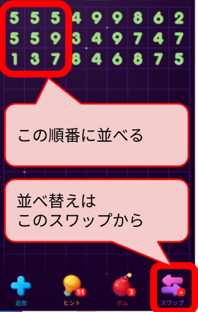 並び替えのスワップは使い切っても広告視聴で何回でもできます